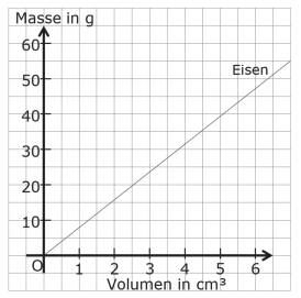 Gib an, welche Masse ein Eisenwürfel mit einem Volumen von 5 cm3 etwa hat. \1P.